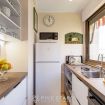 Plaque à induction, four traditionnel, four à micro-ondes, réfrigérateur avec congélateur, bouilloire, machine à café etc.